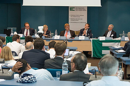 Der Europaabgeordnete und EUD-Ehrenpräsident Elmar Brok steht weiter an der Spitze der Union Europäischer Föderalisten. Beim UEF-Kongress vom 10. bis 12. Juni in Straßburg wurden Präsident Elmar Brok und Generalsekretär Paolo Vacca im Amt bestätigt. Neuer UEF-Vizepräsident ist EUD-Präsidiumsmitglied Otto Schmuck. Sein Vorgänger Heinz-Wilhelm Schaumann gab das Amt nach zehn Jahren ab. Dem Vorstand gehören künftig auch die Europaparlamentarierin und Landesvorsitzende der Berliner Europa-Union Sylvia-Yvonne Kaufmann sowie der…