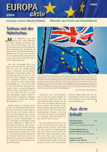 Unsere Verbandszeitschrift „Europa aktiv“ ist online. In der aktuellen Ausgabe finden Sie ein Statement unseres Präsidenten zum Ausgang des britischen EU-Referendums sowie Berichte zum Bundeskongress der Europa-Union in Dresden und zum Europakongress der Union Europäischer Föderalisten in Straßburg, bei dem auch das 70jährige Bestehen der europäischen Föderalisten gefeiert wurde. Viel Neues gibt es auch aus den Landes- und Kreisverbänden zu berichten, unter anderem über ihre vielfältigen Aktionen in der Europawoche.