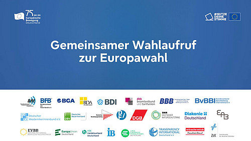Gemeinsam mit der Europäischen Bewegung Deutschland und 22 weiteren ihrer Mitgliedsorganisationen rufen Europa-Union und JEF Deutschland dazu auf, mit vielfältigen Stimmen am 9. Juni bei der Europawahl das vereinte Europa und die freiheitliche Demokratie gegen autoritären Nationalismus und Angriffe von Innen und Außen zu schützen. Der Wahlaufruf fordert eine handlungsfähige und starke Europäische Union und eine verantwortliche deutsche Europapolitik.